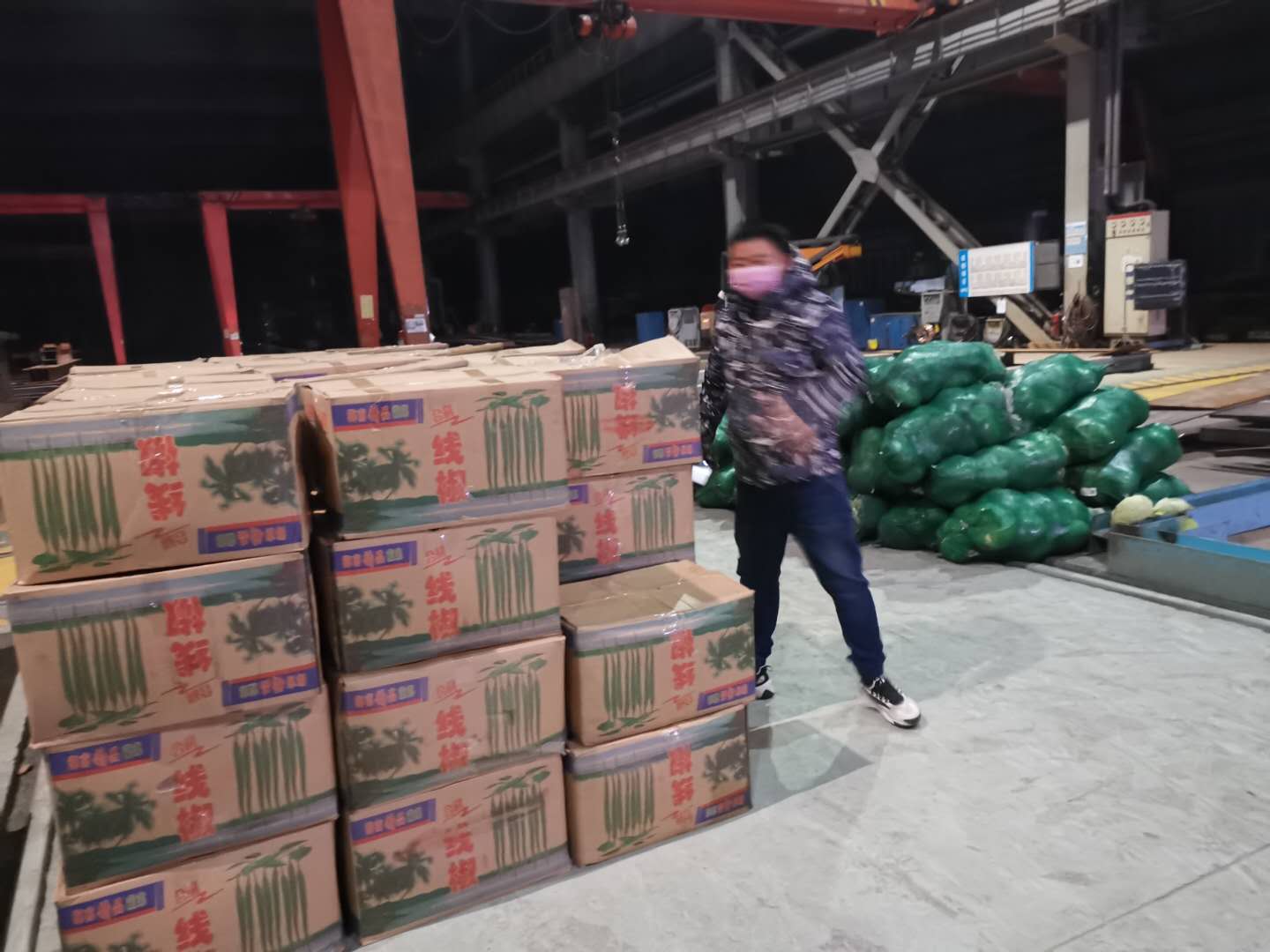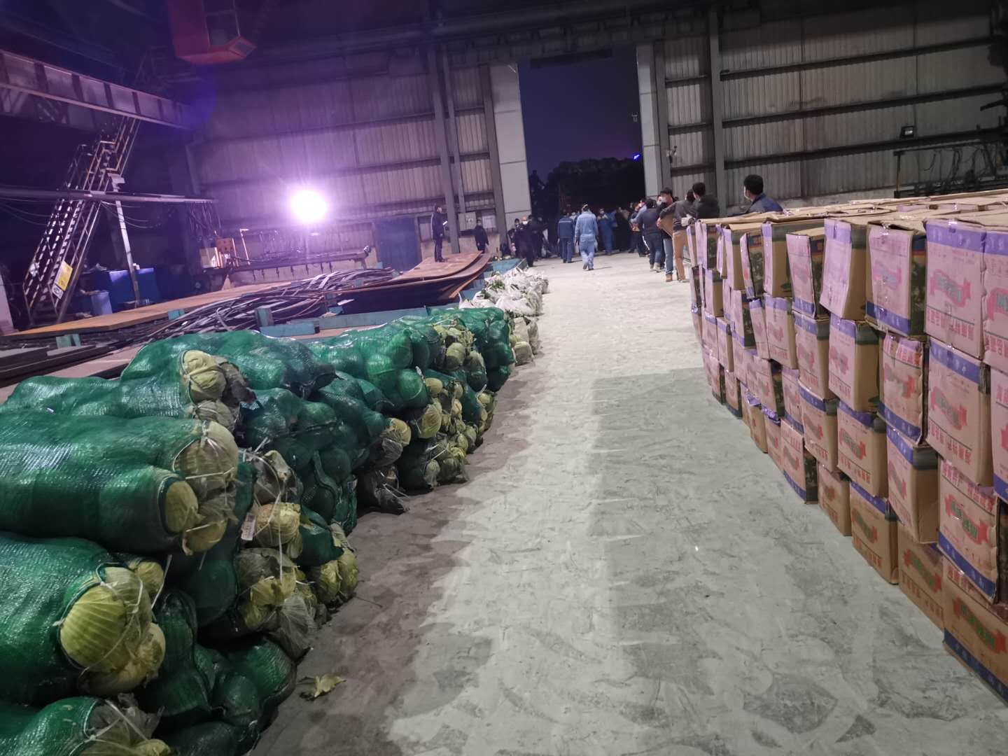 蔬菜虽然到了,但由于鄂州实行疫情管制,大部分人都在居家隔离,党员干部很大部分分派到各个关键岗位工作,而且又是晚上,短时间很难集中人员进行卸货作业!